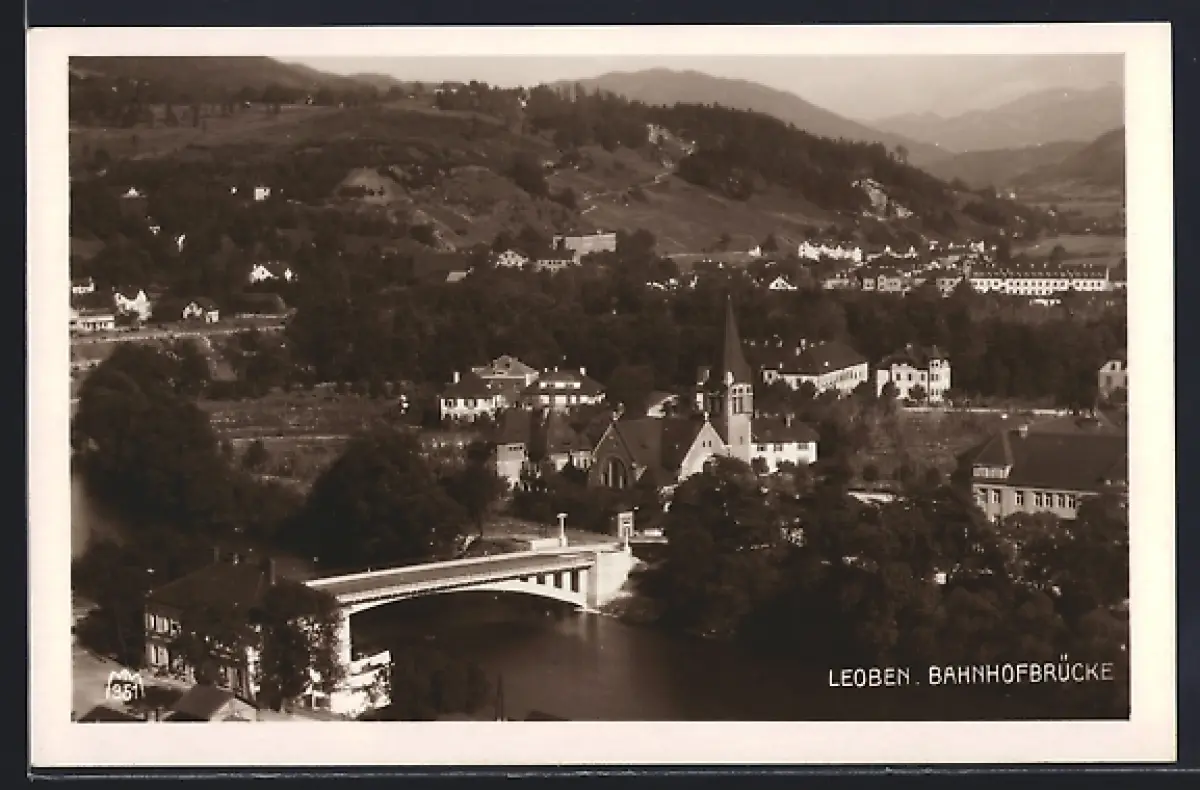 AK Leoben, Teilansicht mit Bahnhofbrücke