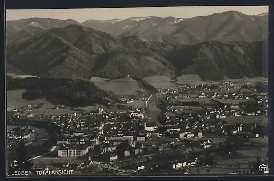 AK Leoben, Totalansicht mit Bergpanorama