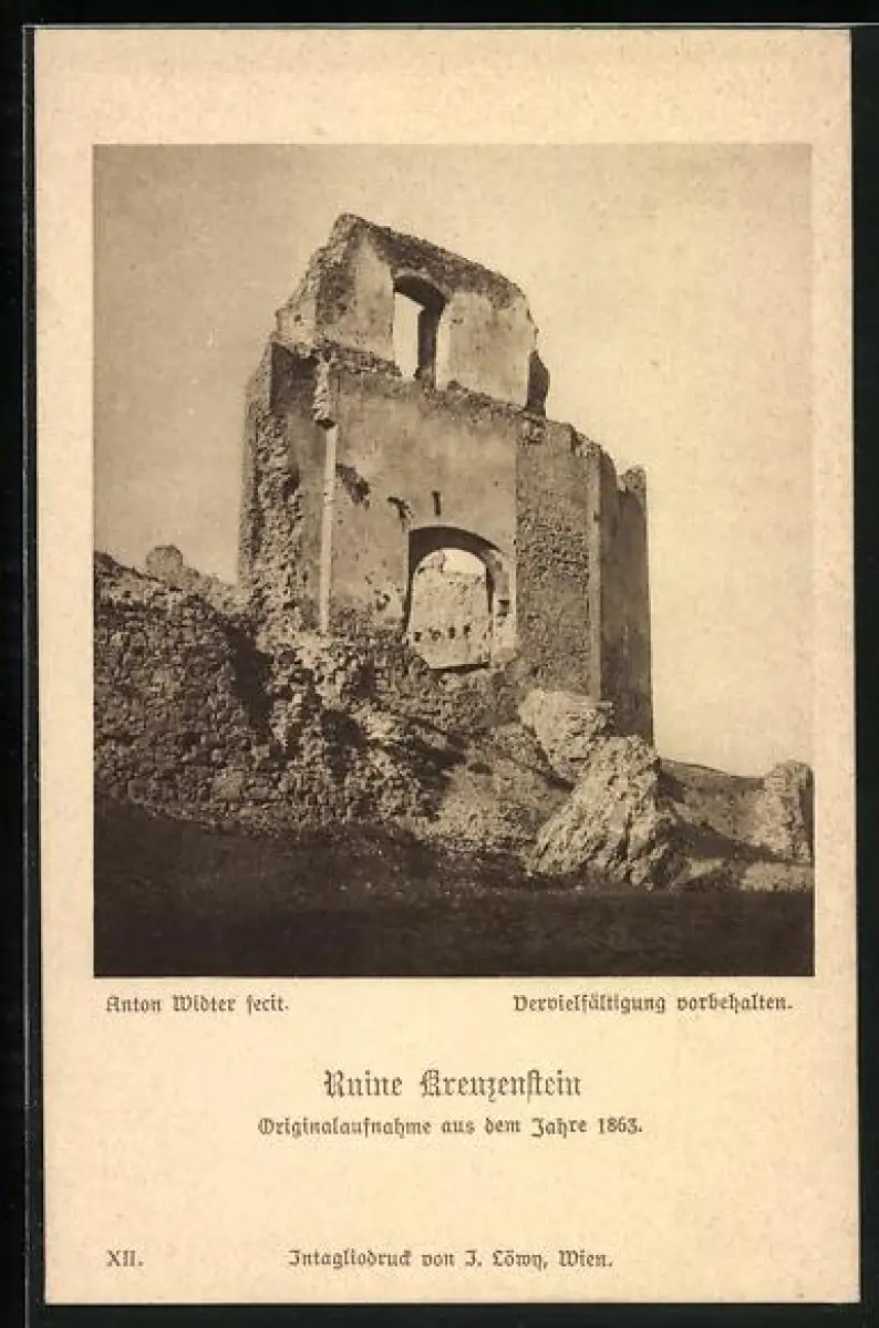 AK Leobendorf, Blick zur Burgruine Kreuzenstein