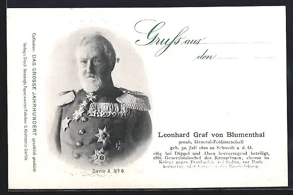 AK Leonhard Graf von Blumenthal, preussischer General-Feldmarschall, geb. 1810