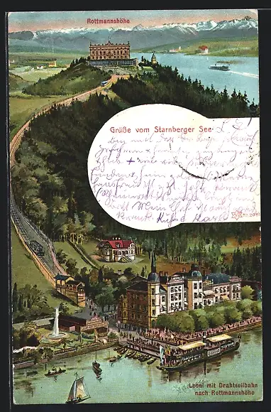 AK Leoni / Starnberger See, Drahtseilbahn zur Rottmannshöhe
