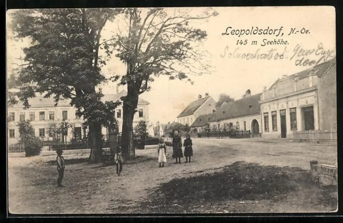 AK Leopoldsdorf /N.-Oe., Handlung des Ferdinand Berger mit Strassenpartie