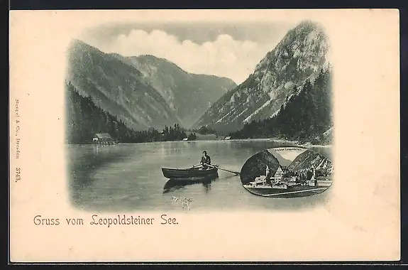 AK Leopoldsteiner See, Ruderboot, Teilansicht
