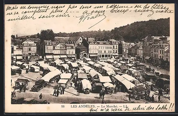 AK Les Andelys, Le Marché animé avec des étals et des visiteurs