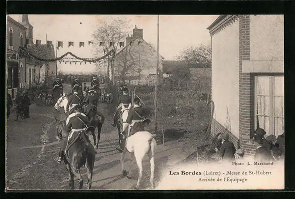 AK Les Bordes, Messe de St-Hubert Arrivee de l`Equipage