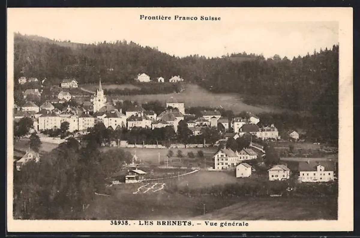 AK Les Brenets, Vue générale à la frontière franco-suisse