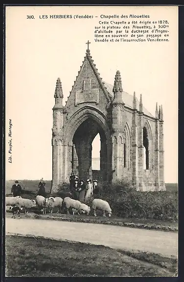 AK Les Herbiers, Chapelle des Alouettes et troupeau de moutons