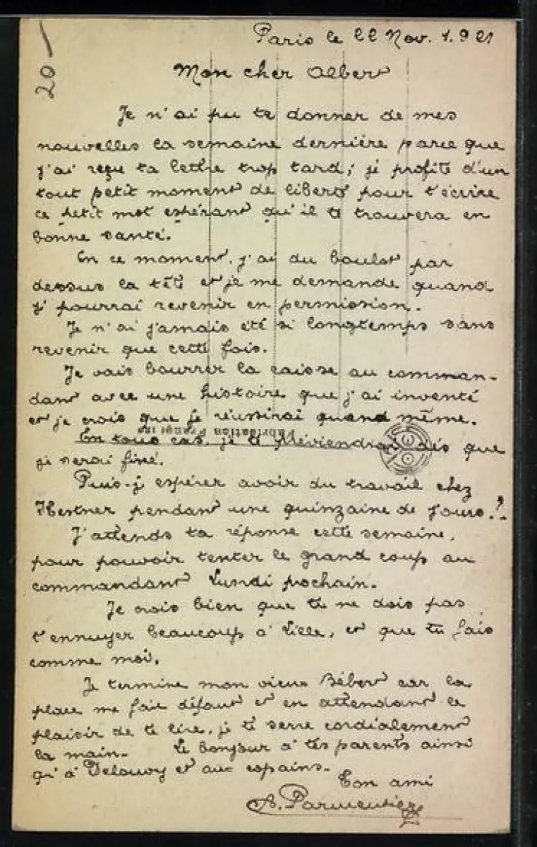 Personenbezogene Daten auf der Rückseite der Karte wurden durch blauen Textmarker unkenntlich gemacht. Die blauen Stellen sind auf die Vorderseite durchgeweicht und wirken sich negativ auf das Postkartenfoto aus