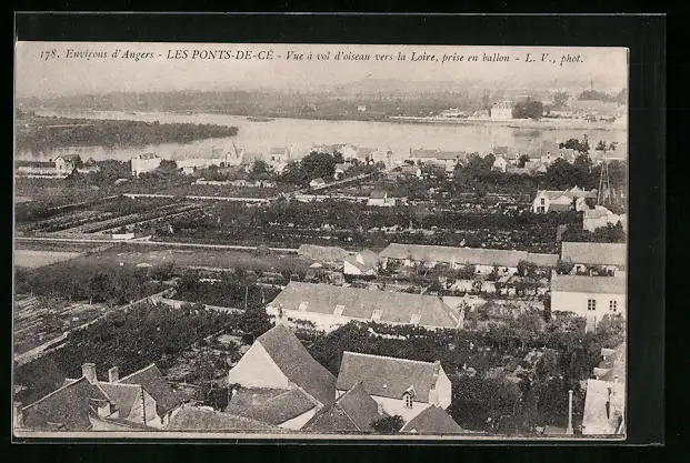 AK Les Ponts-de Cé, Vue a vol d`oiseau vers la Loire, prise en ballon