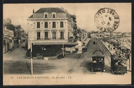 AK Les Sables D`Olonne, Le Remblai, Strassenbahn