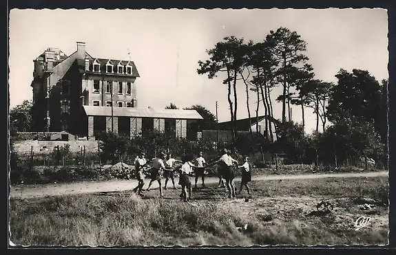 AK Les Sables-d`Olonne, Colonie des Pins Maritimes avec enfants à cheval devant un bâtiment