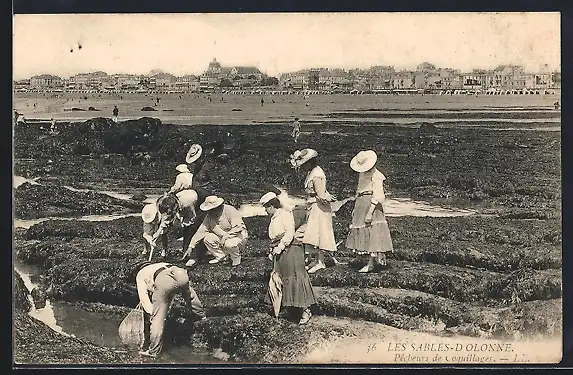 AK Les Sables-d`Olonne, Pêcheurs de Coquillages, Muschelsammler am Strand