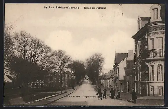 AK Les Sables-d`Olonne, Route de Talmont avec passants et maisons anciennes