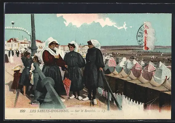 AK Les Sables-d`Olonne, Scène animée sur le remblai avec tentes de plage et passants