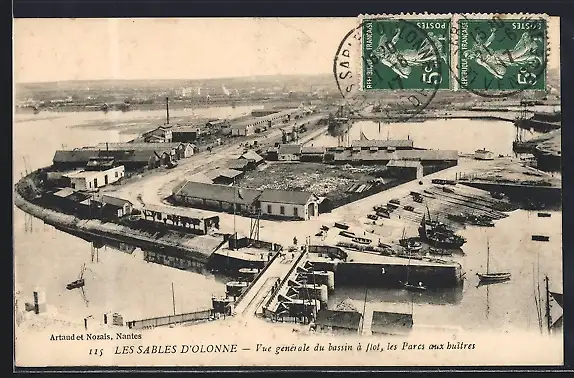 AK Les Sables d`Olonne, Vue générale du bassin à flot, les Parcs aux huitres