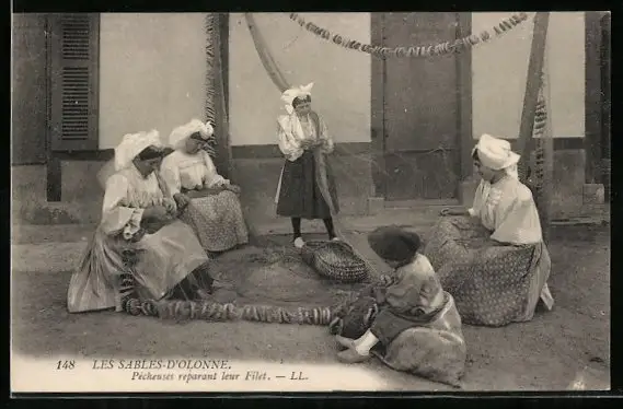 AK Les Sables-d'Olonne, Pecheuses reparant leur Filet