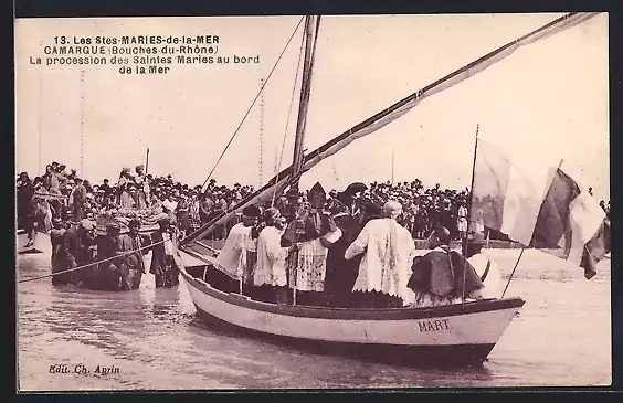 AK Les Saintes-Maries-de-la-Mer, La procession des Saintes Maries au bord de la Mer