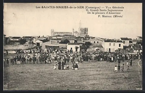AK Les Saintes-Maries-de-la-Mer, Vue générale de la ville et de la foule assemblée