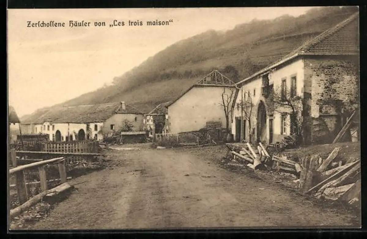AK Les trois maison, Zerschossene Häuser