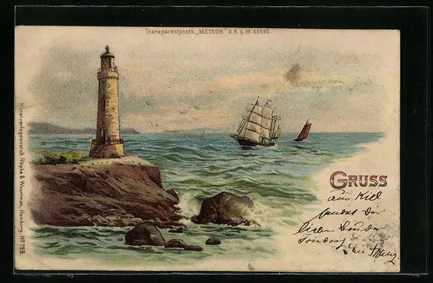 AK Leuchtturm mit Segelbooten, Halt gegen das Licht