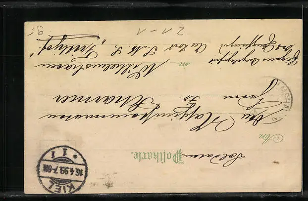 alte Ansichtskarte, gelaufen 1899, Eckknicke li. unten, Stempelspur, guter Zustand