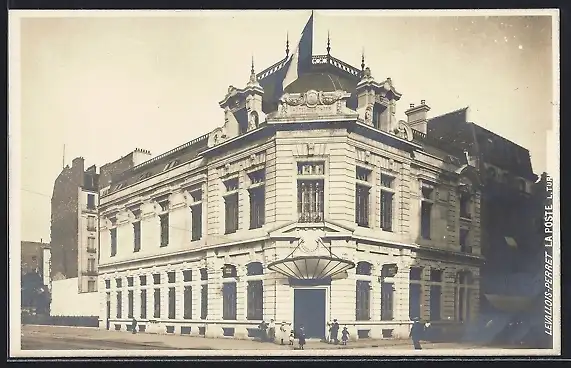 AK Levallois-Perret, La Poste au coin de la rue avec drapeau flottant