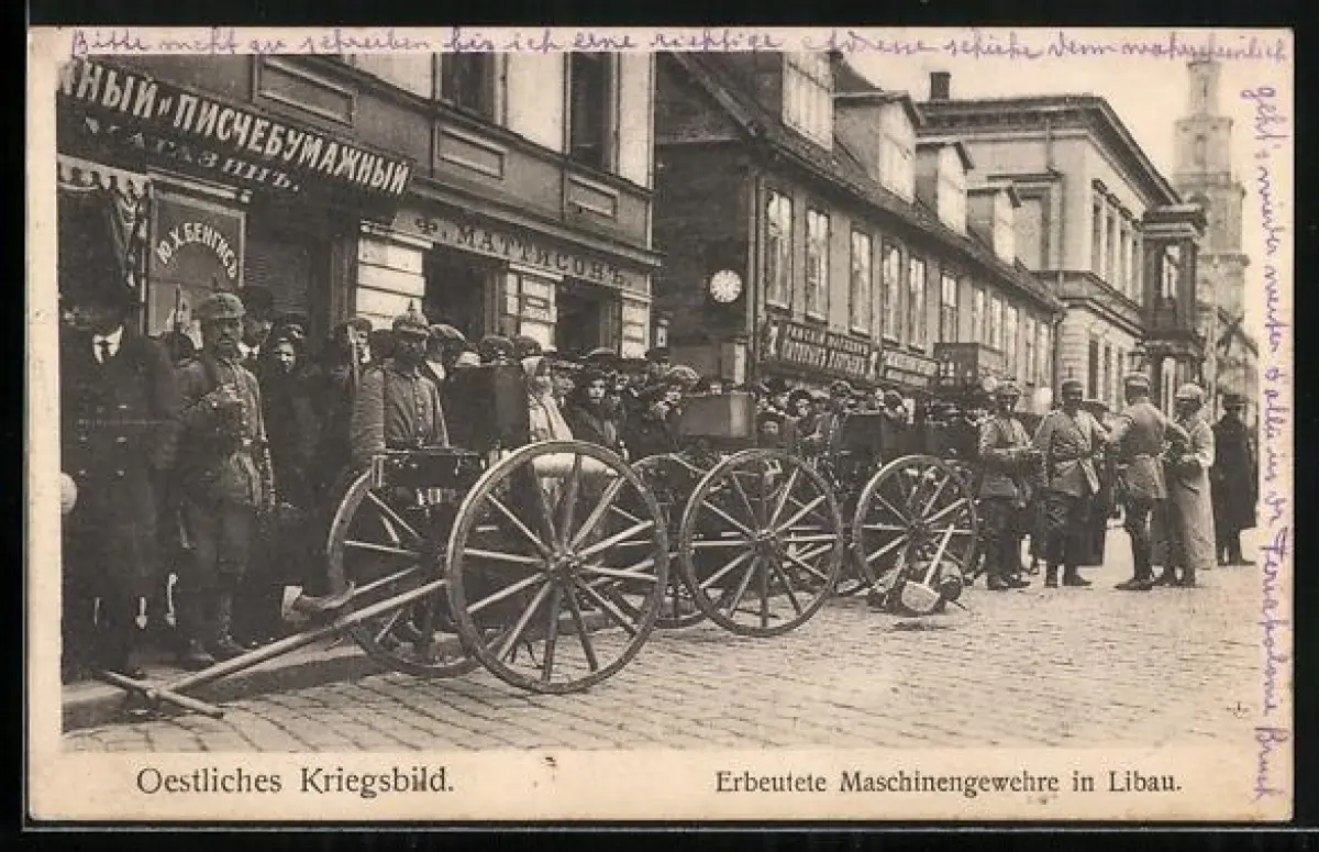 AK Libau, Deutsche Soldaten mit erbeuteten Maschinengewehren