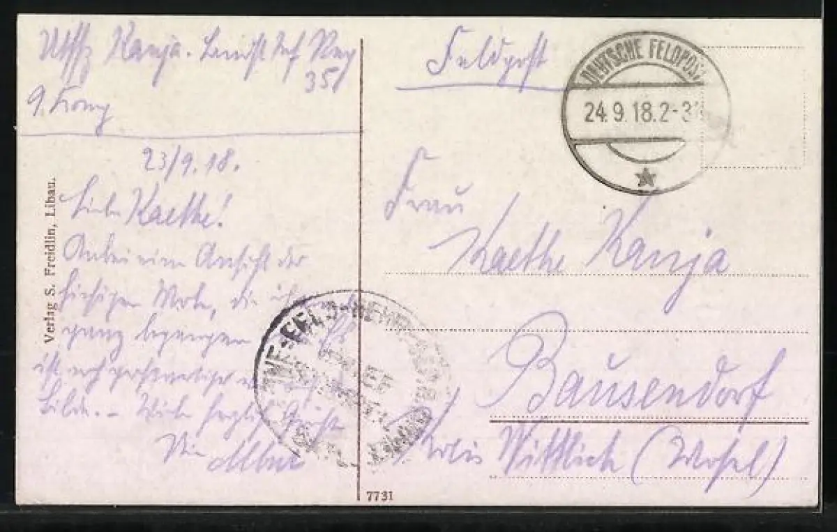 gelaufen 1918, guter Zustand