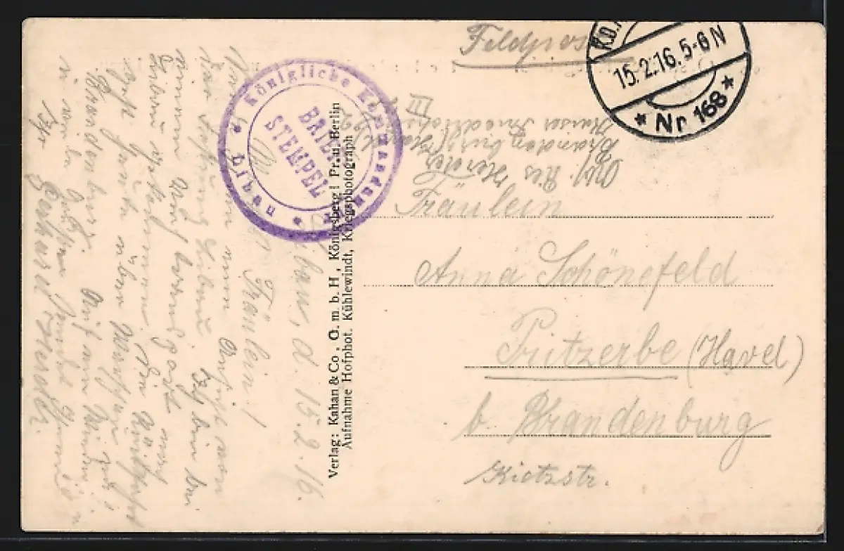 gelaufen 1916, Stempelspur, guter Zustand
