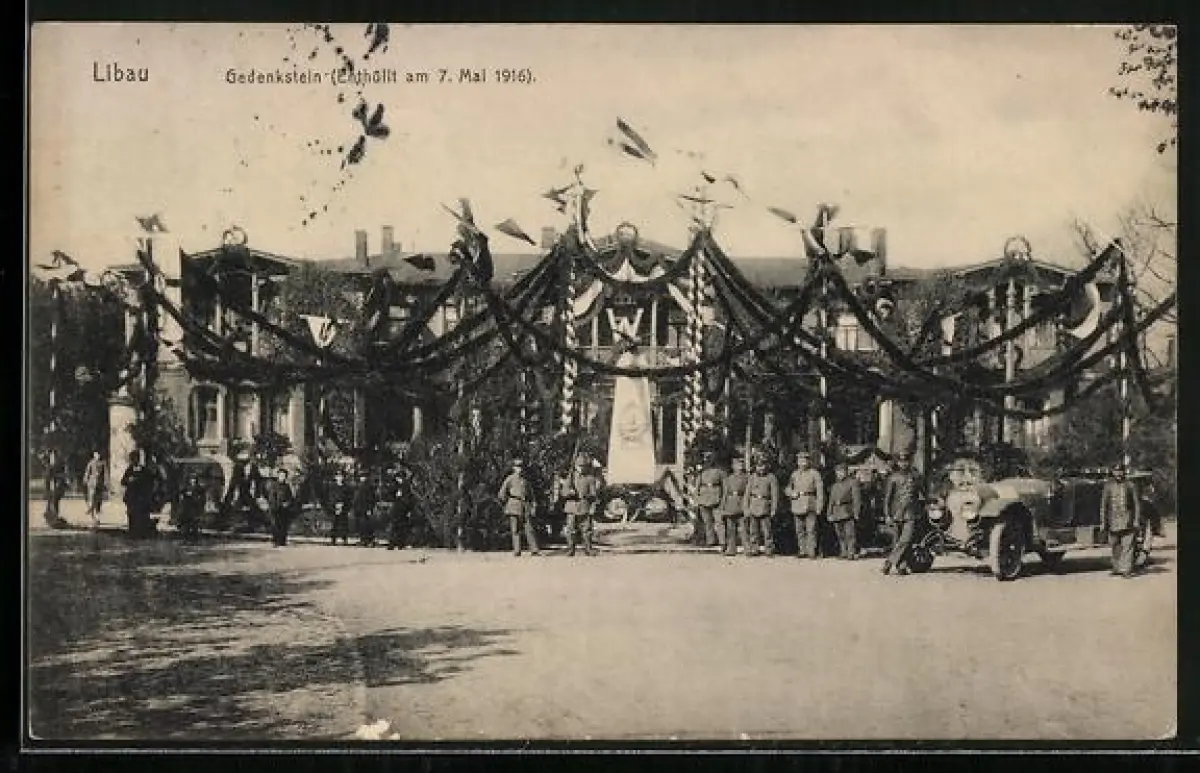 AK Libau, Gedenkstein, enthüllt am 7.5.1916