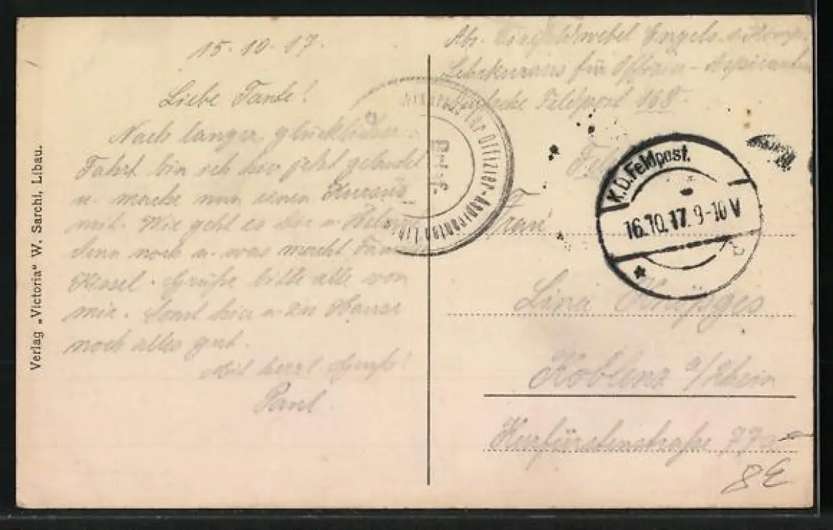 alte Ansichtskarte, gelaufen 1917 als Feldpost, geringer Oberflächenschaden, sonst guter Zustand