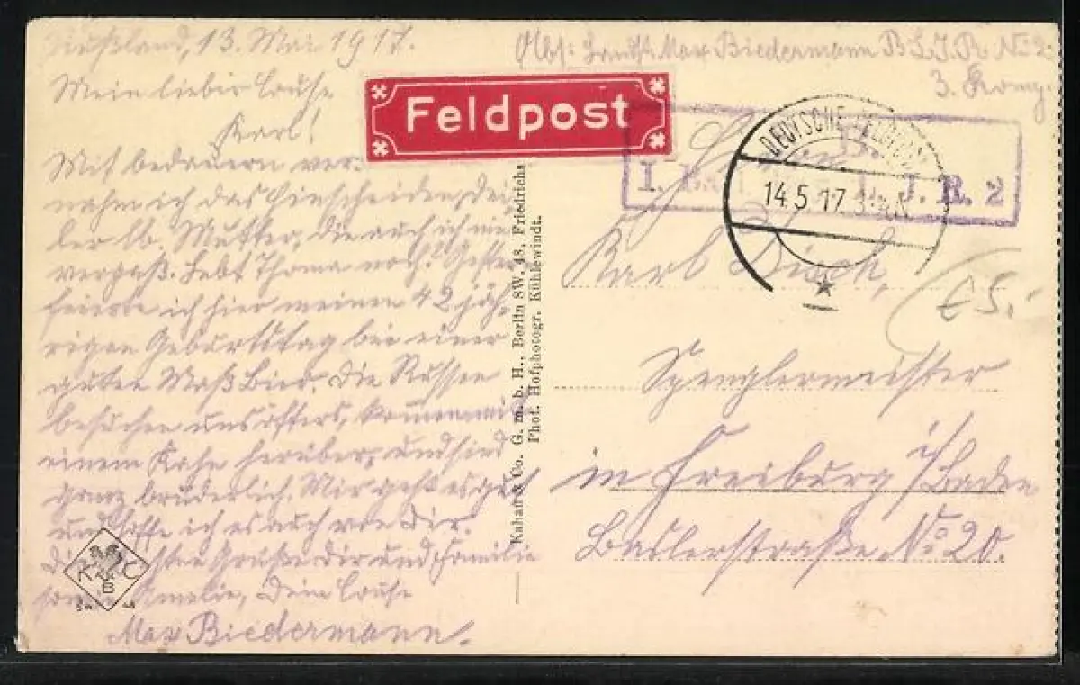 alte Ansichtskarte, gelaufen 1917, guter Zustand