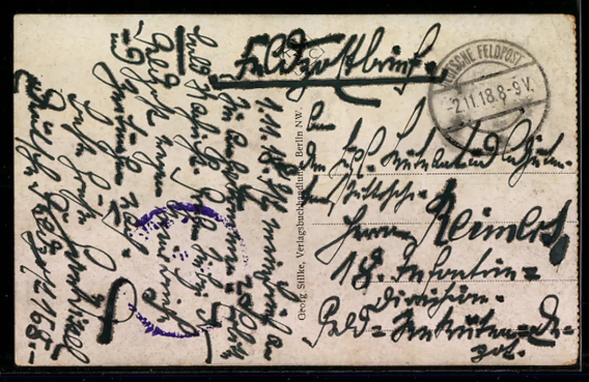 gelaufen 1918, Eckknicke li. oben, guter Zustand