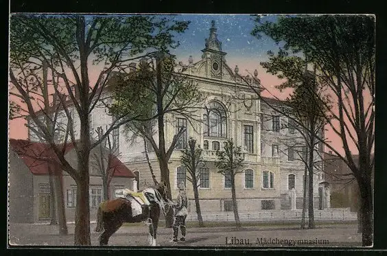 AK Libau, Mädchengymnasium und Soldat mit Pferd