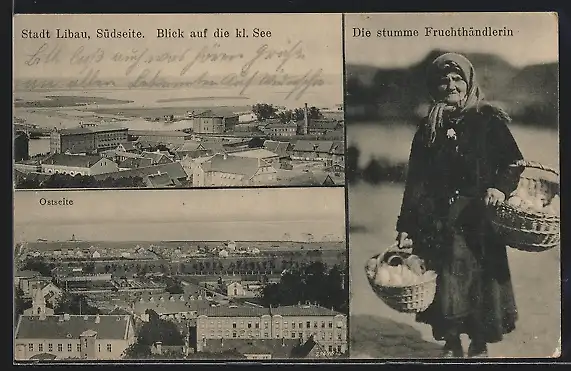 AK Libau, Teilansicht mit kl. See, Stumme Fruchthändlerin