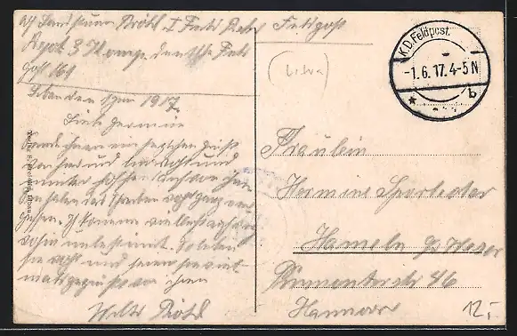 alte Ansichtskarte, gelaufen 1917, guter Zustand