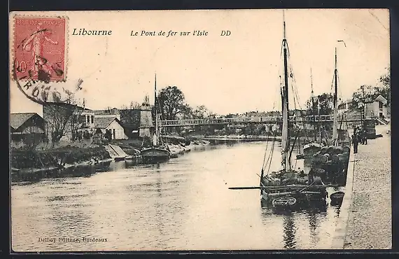 AK Libourne, Le Pont de fer sur l`Isle avec bateaux amarrés