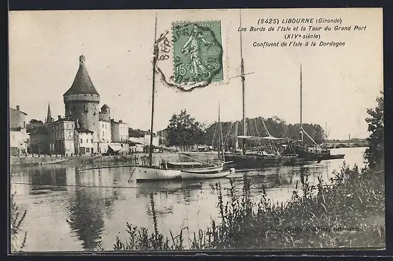 AK Libourne, Les Bords de l`Isle et la Tour du Grand Port (XIVe siècle) au confluent de l`Isle et la Dordogne