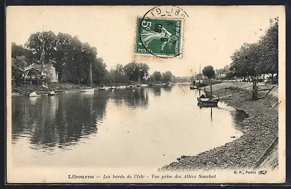 AK Libourne, Les bords de l`Isle, Vue prise des Allées Souchet