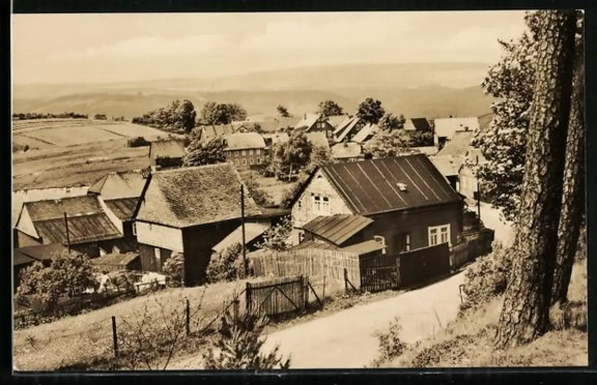 AK Lichtenhain an der Bergbahn, Teilansicht des Ortes mit Umgebung