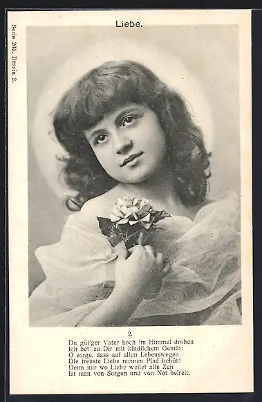 AK Liebe, Junge Frau mit einer Rose, Allegorie