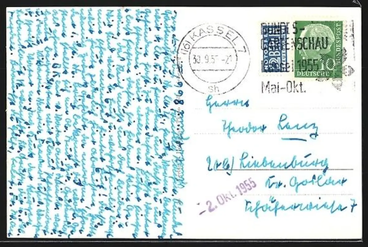 gelaufen 1955, Eckknick links oben, guter Zustand