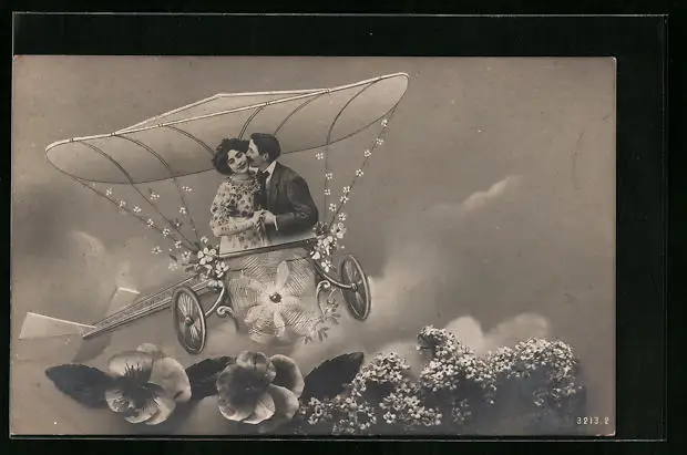 AK Liebespaar in einem Propellerflugzeug
