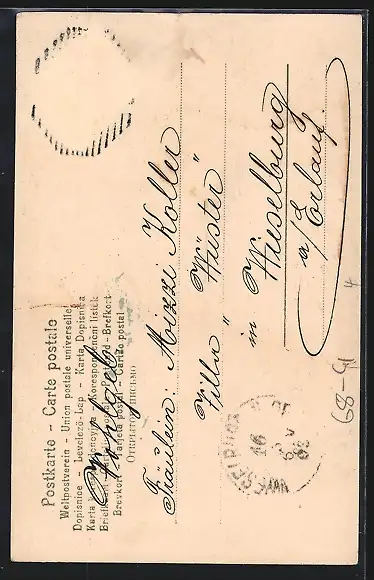 alte Ansichtskarte, gelaufen 1903, Briefmarke entfernt, minimaler Einriss oben mittig, guter Zustand