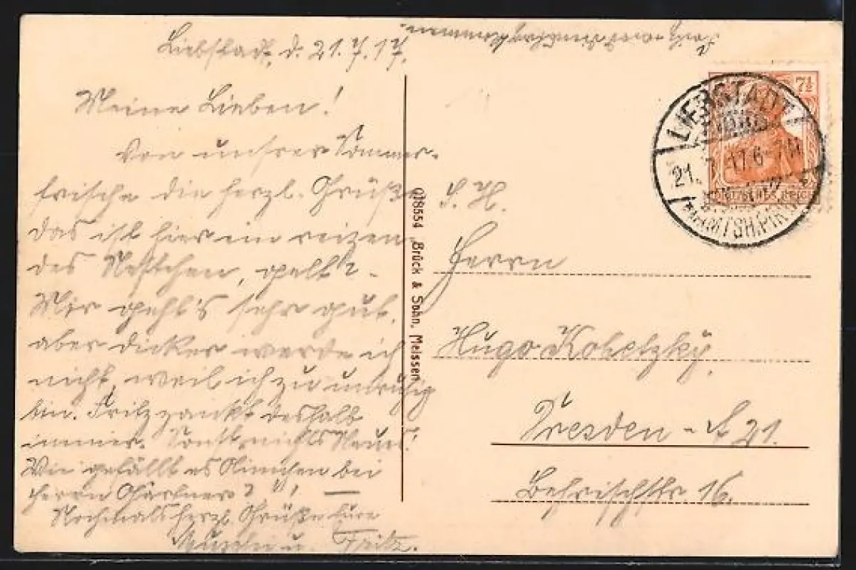 alte Ansichtskarte, gelaufen 1917, Stempelspur, guter Zustand