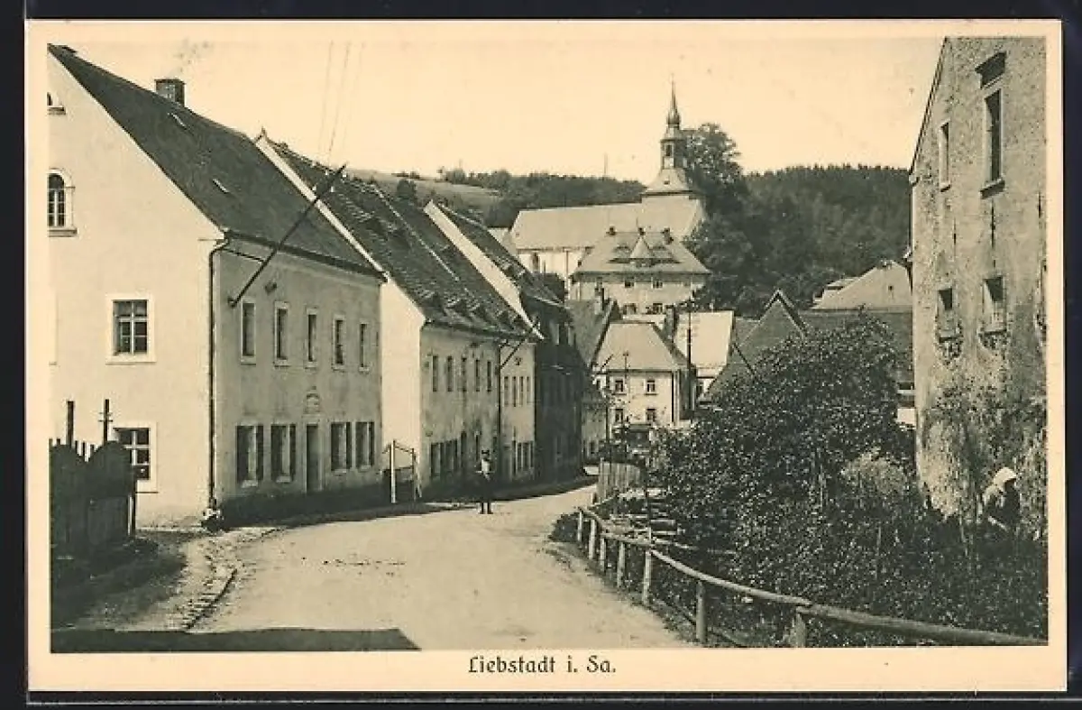AK Liebstadt i. Sa., Strassenpartie mit Kirche