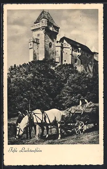 AK Liechtenstein, Feste mit Pferdefuhrwerk im Vordergrund