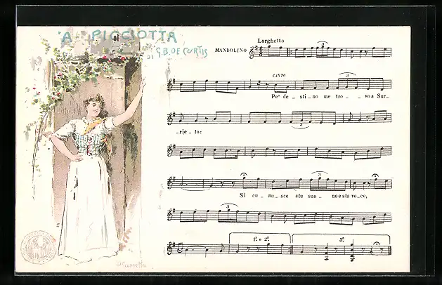 AK Lied A Picciotta nach G.B. De Curtis, mit junger Frau im weissen Kleid