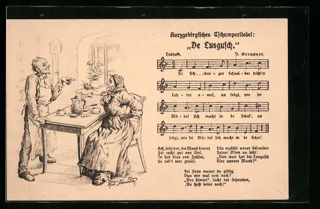 AK Lied-Aarzgebirgisches Tschumperliedel De Lusgusch