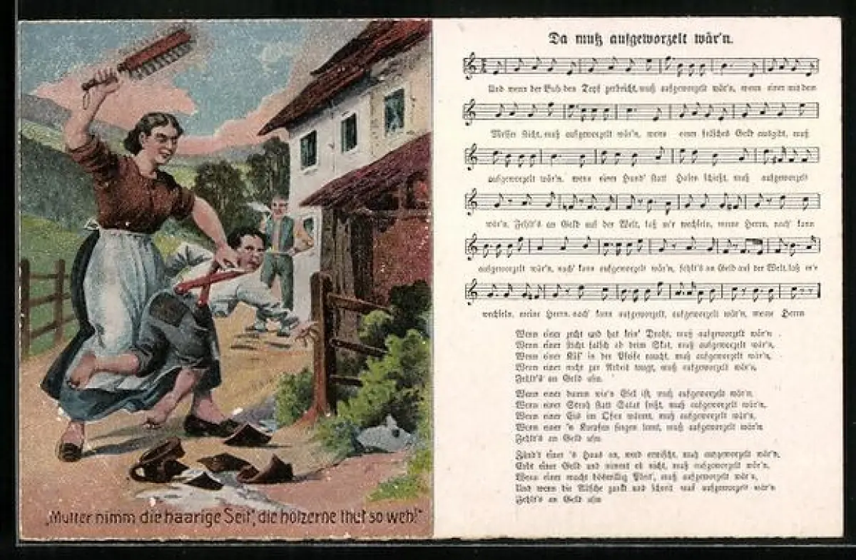 AK Lied Da muss aufgeworzelt wär`n, Mutter versohlt ihrem frechen Sohn den Hintern